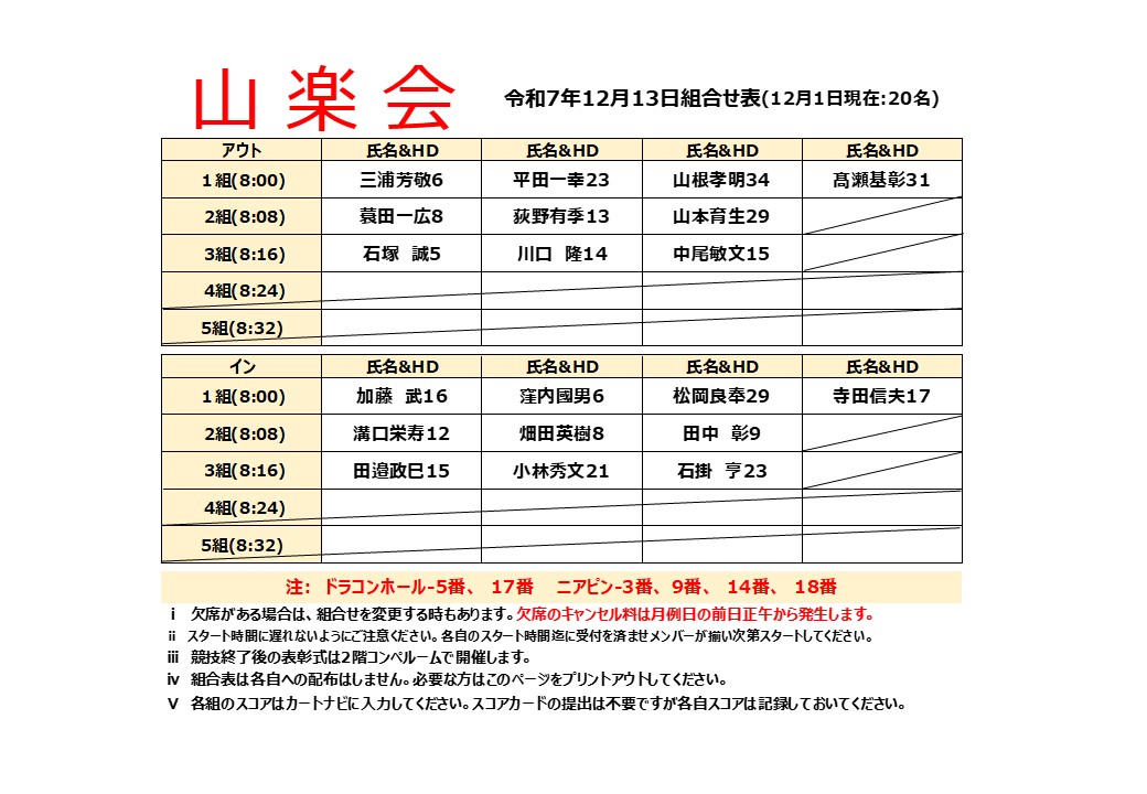 ※ プレイ終了後の表彰式・・・・・・クラブハウスレストランで行います。